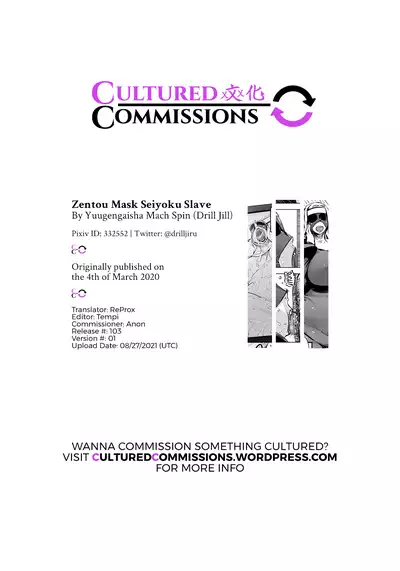 [Yuugengaisha Mach Spin (Drill Jill)] Zentou Mask Seiyoku Slave Hitozuma ○○-san 02 | Full Face Mask Sex Slave Wife, 〇〇-san 02 [English] [CulturedCommissions]