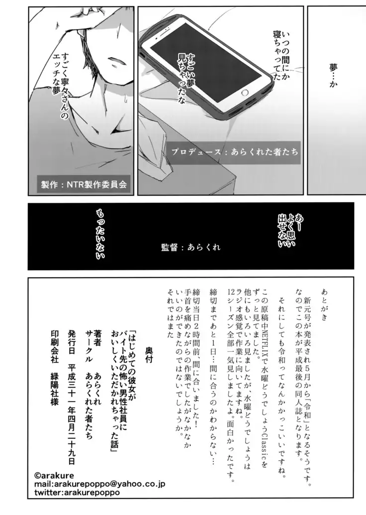 Hajimete no Kanojo ga Baitosaki no Kowai Dansei Shain ni Oishiku Itadakarechatta Hanashi