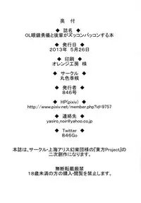 (C85) [Maruiro Kikou (846gou)] OL Megane Yuugi to Kouhai ga Mata Zukkon Bakkon Suru Hon (Touhou Project)